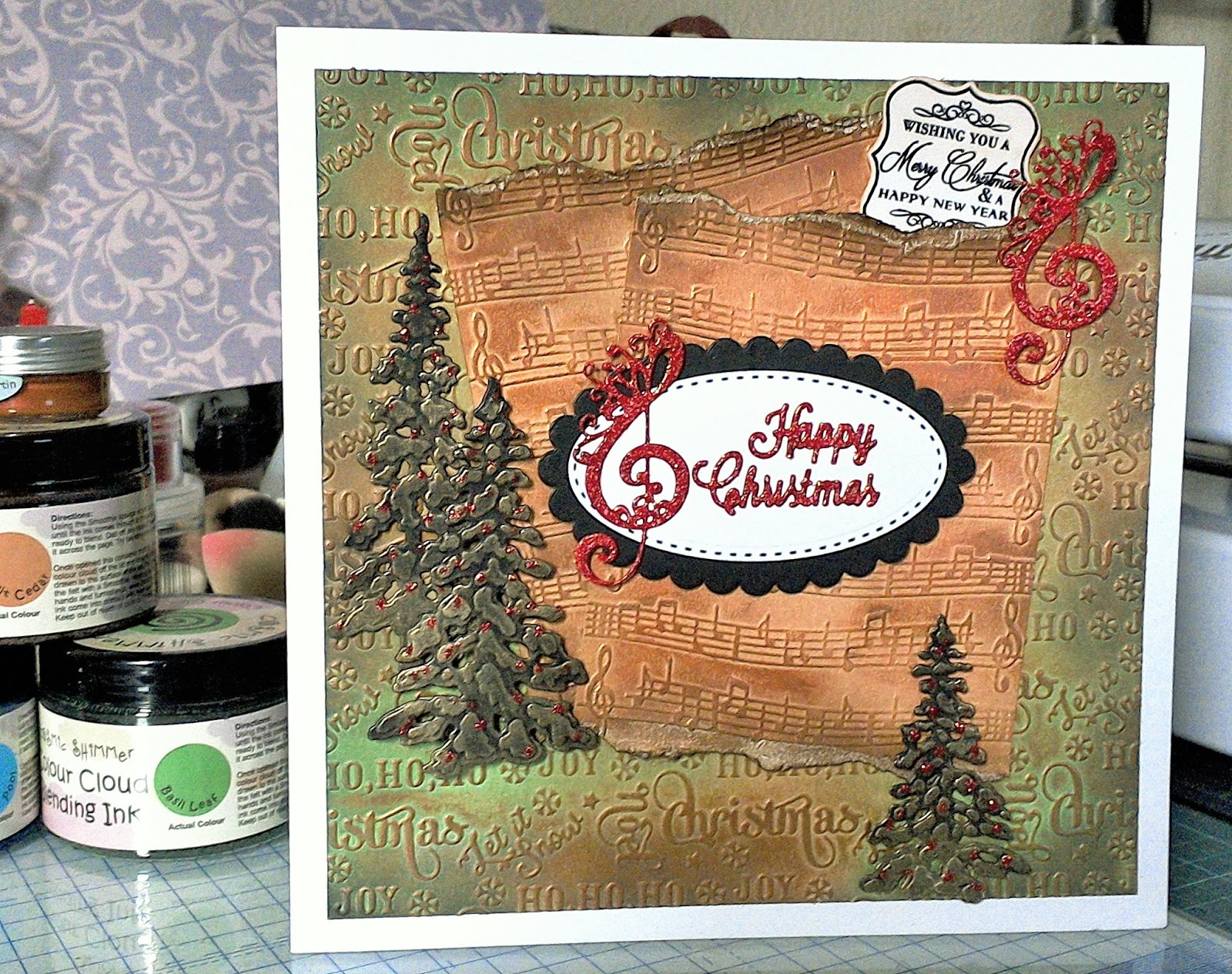 This week I have chosen to use quite a few products from several different companies, my main focus was upon the free embossing folder that came with the Inspiration magazine by Crafters Companion as I know so many of you have invested in it, along with a rather sweet little die that we have not used before and it's a music themed die called Treble Clef and is one of the Intricutz Dies by Couture Creations.