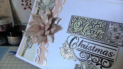 As you will see I have used a couple of the sentiment die's from the Festive Wonder range and teamed them up with a rather beautiful Poinsettia Mini Striplet die from Sue Wilson's Festive range. I really enjoyed using this die and I'm sure that it could well be used for lots of other cards and not just Christmas, think I will have to add this one to my stash.